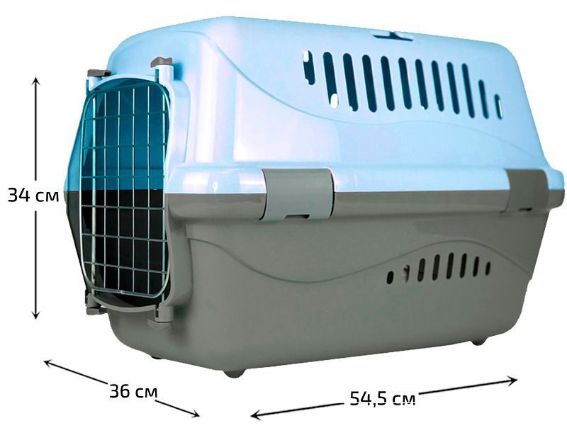 Переноска (Зооэкспресс) 18311 для животных "Турне"L с металлической дверцей 54.5*36*34 см голубая.