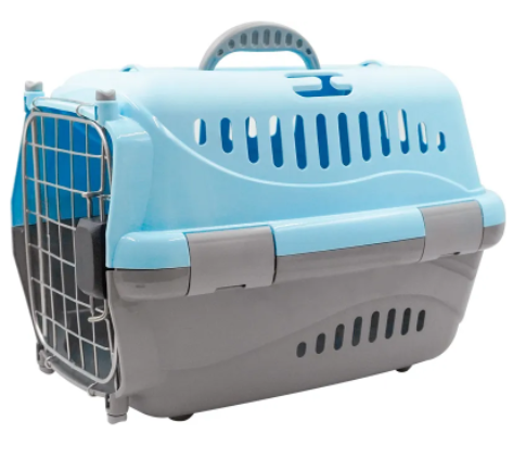 Переноска (Зооэкспресс) 16311 переноска для животных "Турне" M с металлической дверцей 48*32*32 см голубая