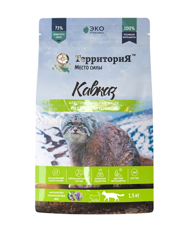 5114П ТерриториЯ Кавказ 1,5кг Индейка с брусникой для стерилизованных кошек