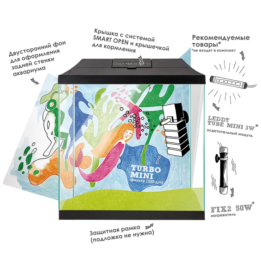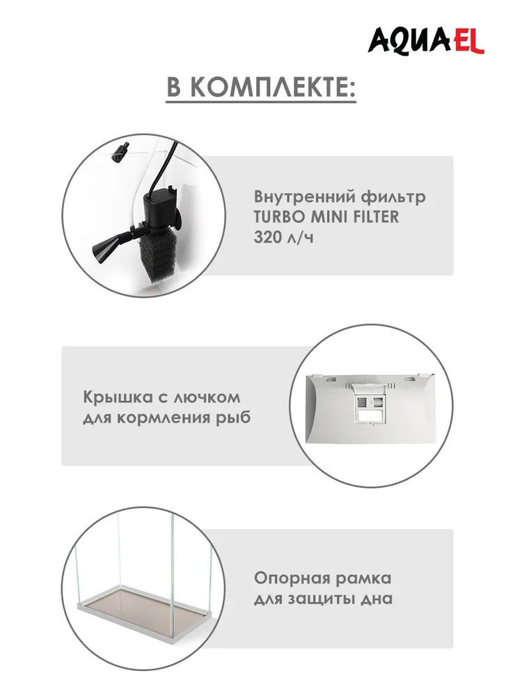 AQUAEL Аквариум LEDDY MINI 30 ЧЕРНЫЙ / 12,6л прямой, 30х15х28см. Комплектация: крышка с креплениями для освещения, фильтр TURBO MINI, фон двусторонний, опорная рамка.