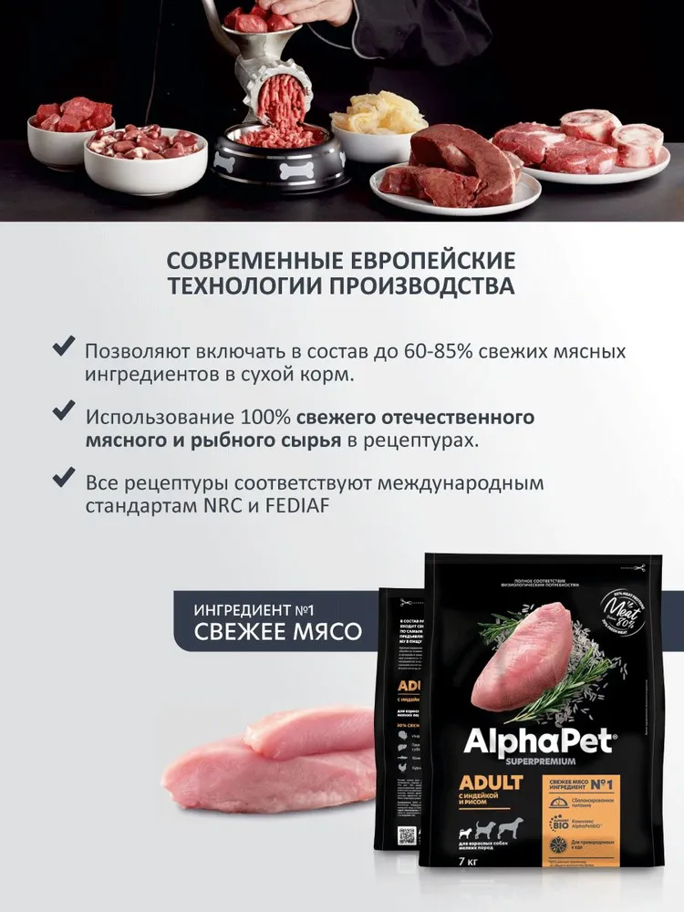 AlphaPet Superpremium (АльфаПет) 7кг с индейкой и рисом сухой для взрослых собак мелких пород (652291)