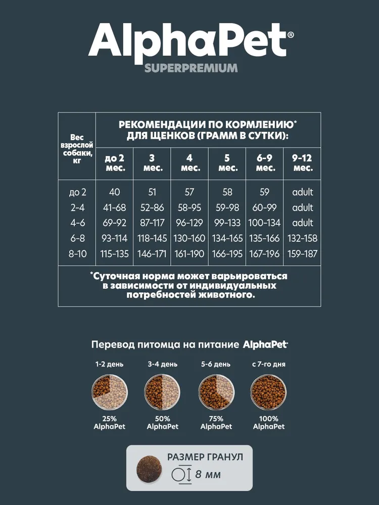 AlphaPet Superpremium полнорационный сухой корм для щенков, беременных и кормящих собак мелких пород с ягненком и индейкой.