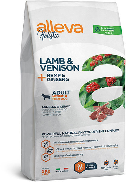 Аллева Холистик для собак с ягненком и олениной, коноплей и женьшенем медиум/макси 12 кг (002431) |