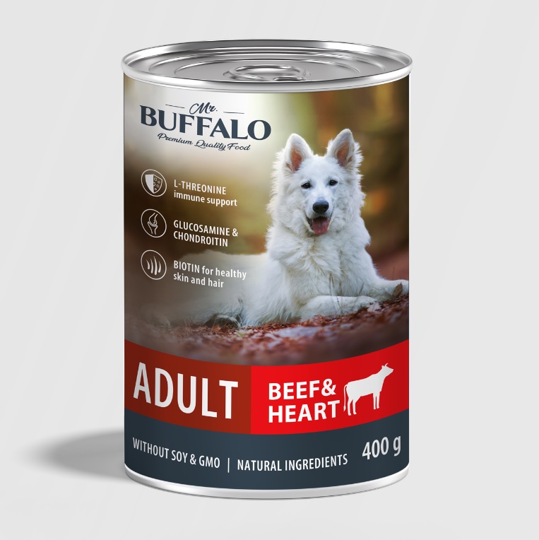 Баффало (Mr.Buffalo) Adult Dog 0,4кг говядина и сердце консервы для собак B401 (790419)