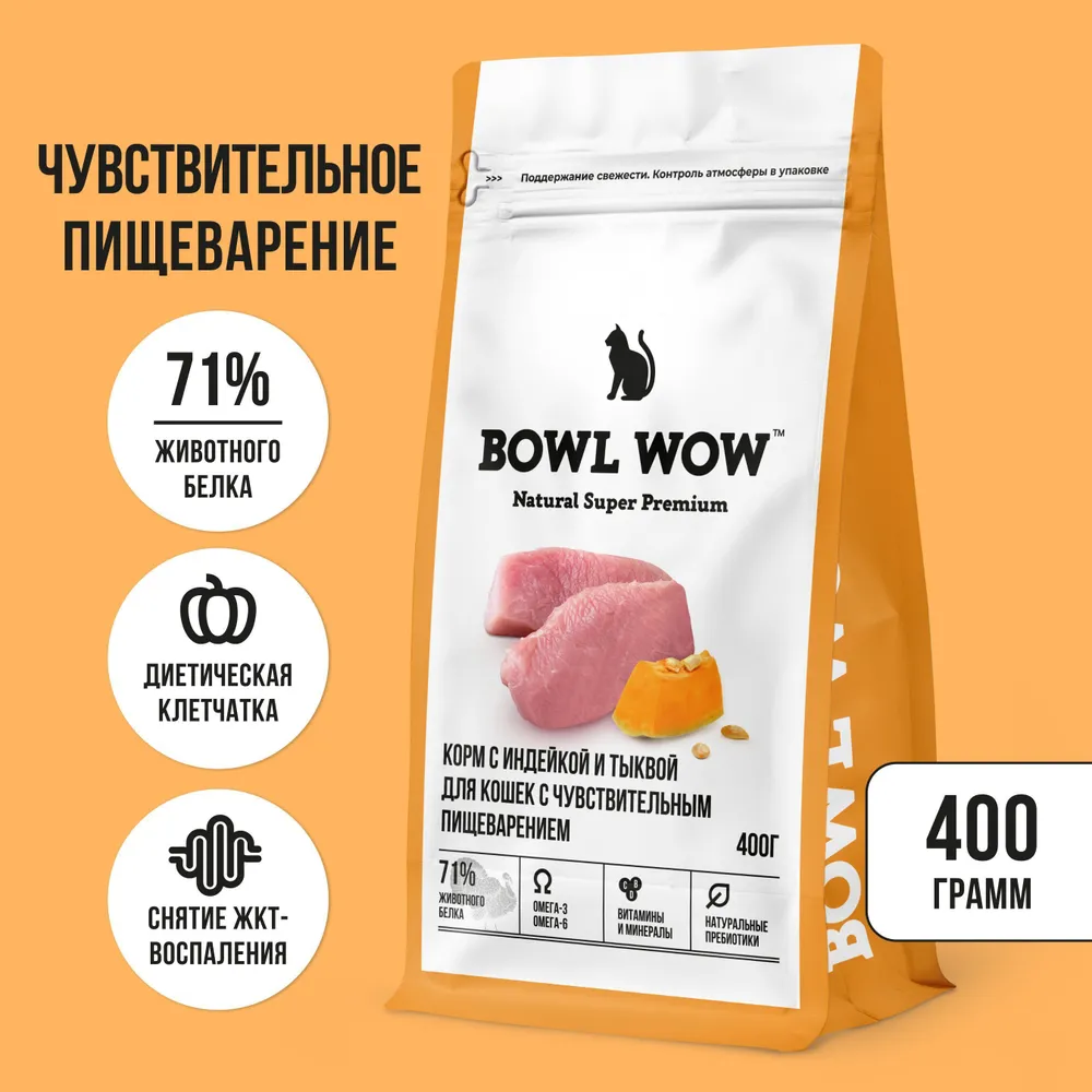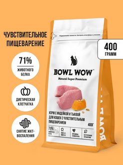 Bowl Wow 0,4кг с индейкой и тыквой сухой для кошек с чувствительным пищеварением (660170)