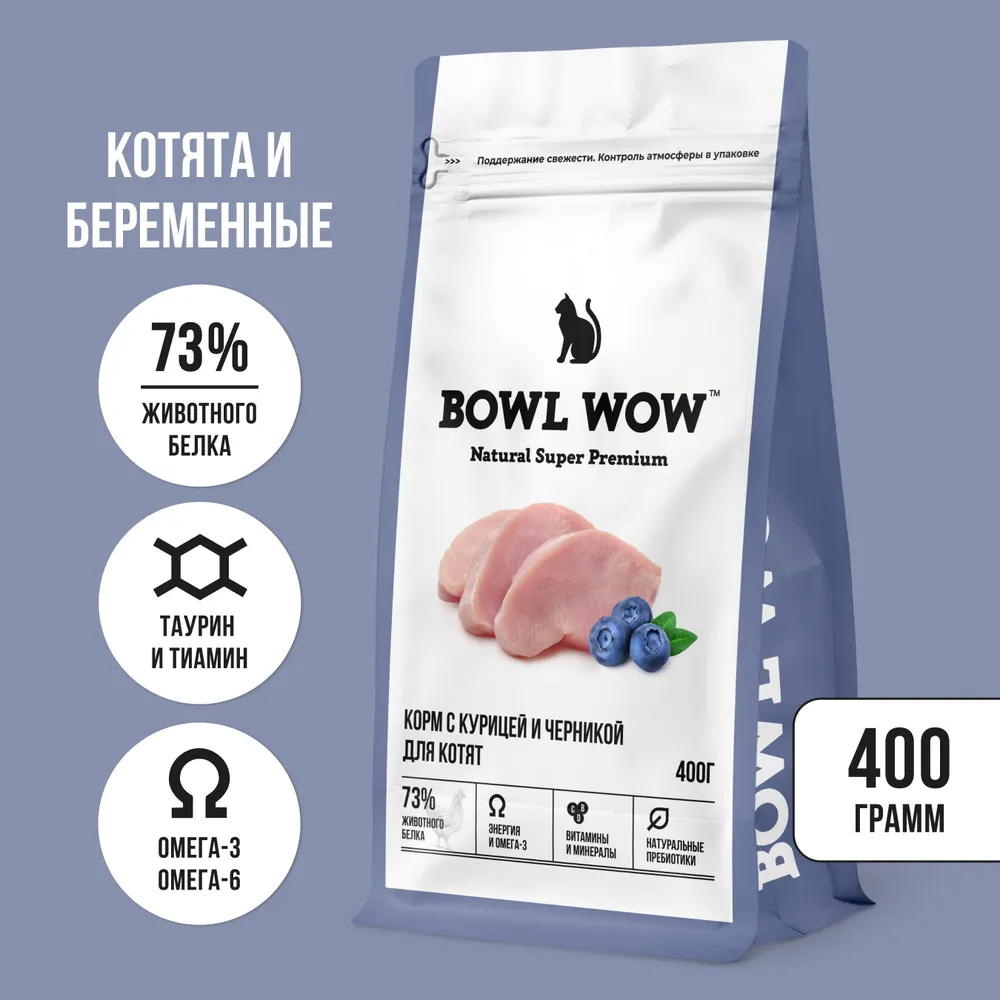Бау Вау Bowl Wow 0,4кг с курицей и черникой сухой д/ котят (660224) Вега |