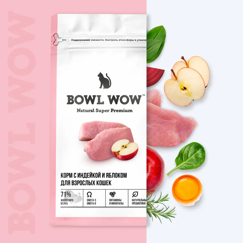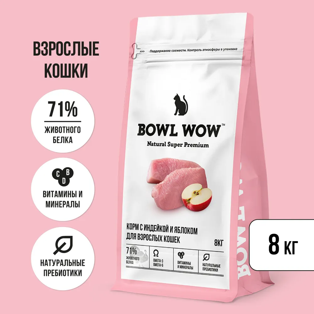 Bowl Wow 8кг с индейкой и яблоком сухой для кошек (660101)