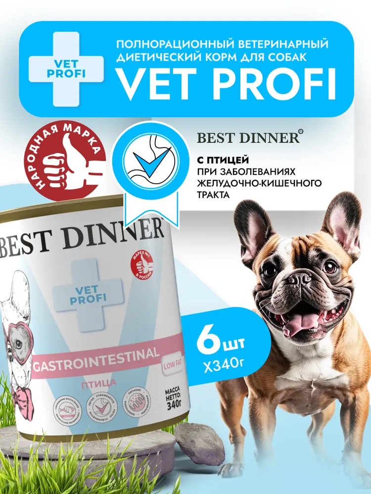 Best Dinner Vet Profi Gastro Intestinal Low Fat 0,34кг птица консервы для собак (409426)