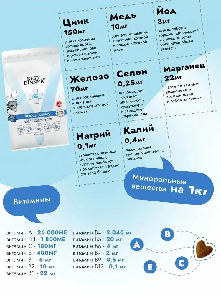 Бест Диннер Vet Profi Renal Cardiac 2кг сухой д/собак (408610) |