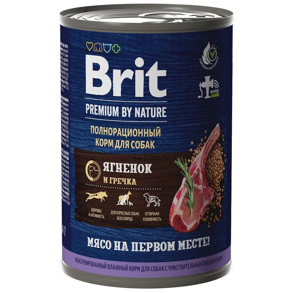 Брит Премиум by Nature 410г ягненок гречка консервы д/взр. собак всех пород с чув. пищевар (51113) |