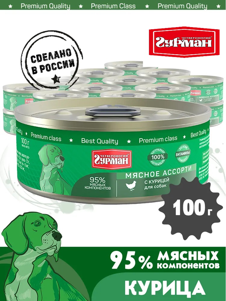 Четвероногий гурман 0,1кг Мясное ассорти с курицей консервы для собак
