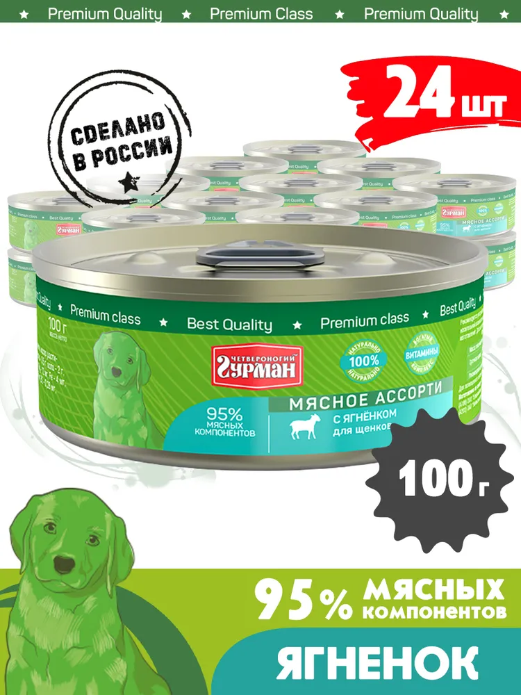 Четвероногий гурман 0,1кг Мясное ассорти с ягненком консервы для щенков