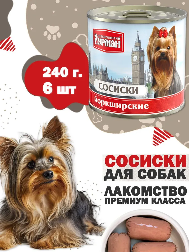Четвероногий гурман 0,24кг сосиски Йоркширские консервы для собак