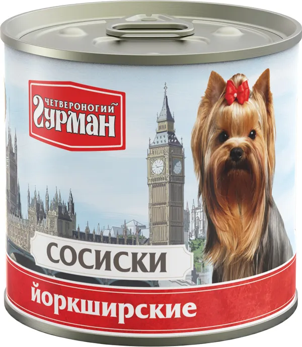 Консервы Четвероногий гурман Сосиски для собак «Йоркширские».