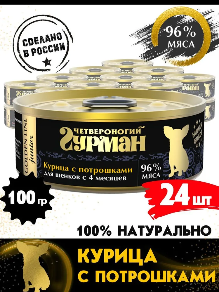 --Четвероногий гурман 0,1кг Golden Line Курица с потрошками в желе для щенков (547004)Корм для собакАмуниция для собакВитамины для собакВольеры клетки для собакИгрушки для собакЛакомства для собакЛежаки и домики для собакМиски для собакОдежда и обувь для собакСредства гигиены для собакТовары для груминга собакТовары для дрессировки собакАнтигадины для собакТранспортировка собакТуалеты для собакМерч