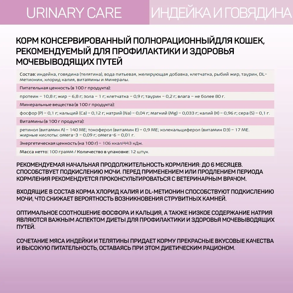 Четвероногий гурман 100г Zoodiet Urinary Care Индейка с телятиной д/кошек, здоров.мочевыводящ.путей |
