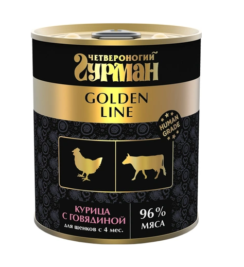 Четвероногий гурман 0,34кг Golden Line Курица с говядиной в желе для щенков (232942)