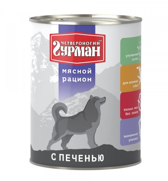 Четвероногий гурман 850г Мясной рацион с печенью д/собак (541385) |
