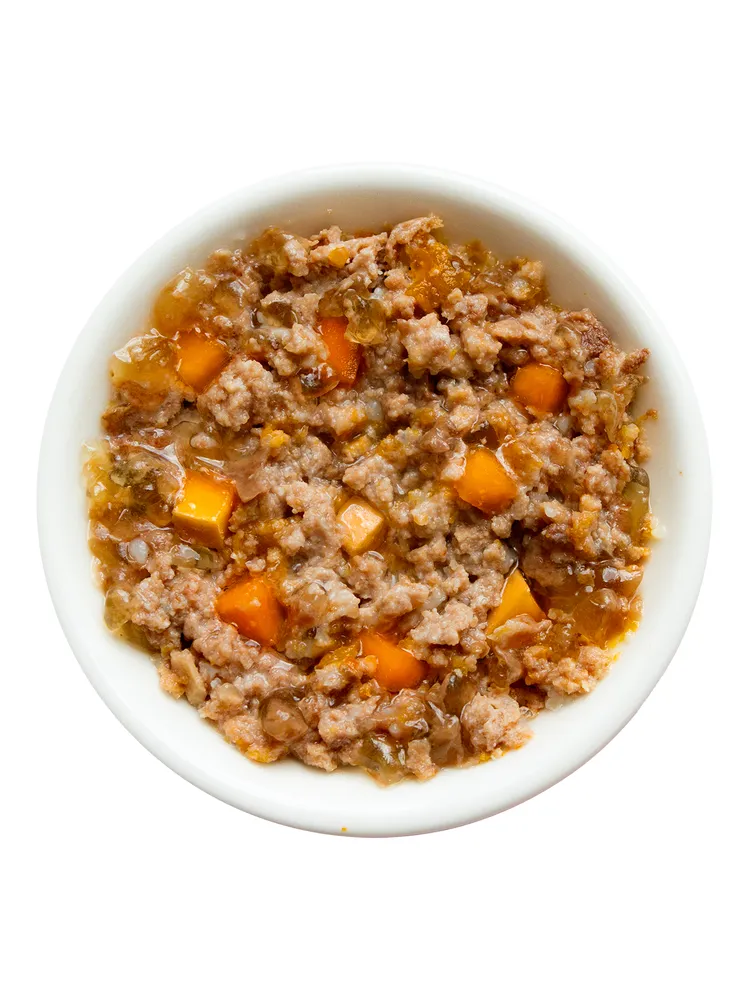 Состав: ягнёнок, печень говяжья, субпродукты мясные, тыква, растительное масло, желирующая добавка, соль, вода. Пищевая ценность, %: белки — 9, жиры — 14, клетчатка — 1, зола — 2, влажность — 82.
