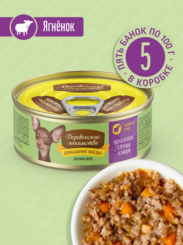 Деревенские лакомства Домашние обеды 0,1кг рагу ягненка с печенью и тыквой консервы для собак (76135450)