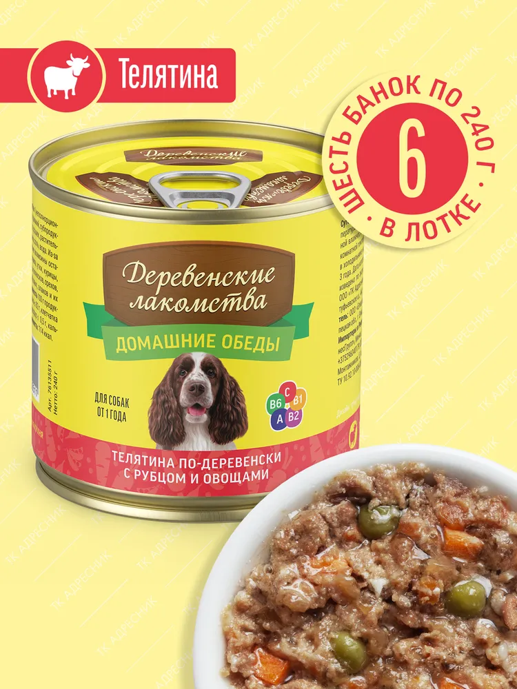 Деревенские лакомства Домашние обеды 0,24кг консервы телятина с рубцом и овощами для собак (76135511)