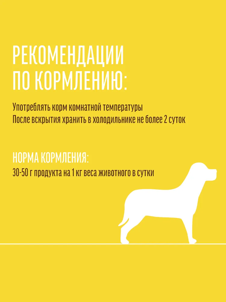 Фирменное блюдо нашего шеф-повара. Насыщенный вкус томлёной телятины дополнен любимым собаками рубцом. Витаминный рацион обеспечивают зеленый горошек и молодая морковь.