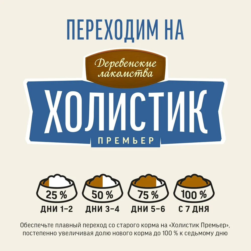 Сбалансированный, натуральный, полнорационный корм «Деревенские лакомства Холистик Премьер» обеспечивает питомцев всем необходимым для поддержания здоровья на каждом этапе жизни. В уникальных рецептах учтены не только вкусовые предпочтения кошек, но и их физиологические особенности, уровень активности и возраст.