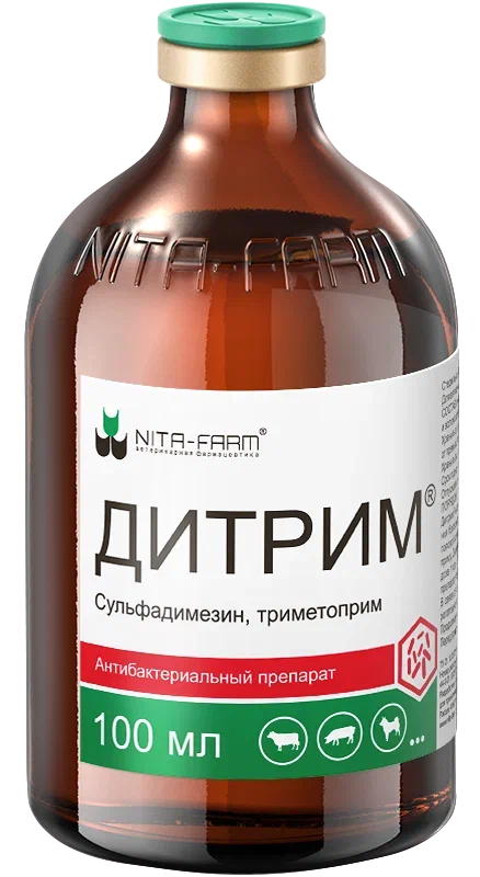 Дитрим – это препарат для лечения крупного рогатого скота, свиней, лошадей и собак при заболеваниях бактериальной этиологии. По внешнему виду препарат представляет собой прозрачную жидкость желтого цвета.