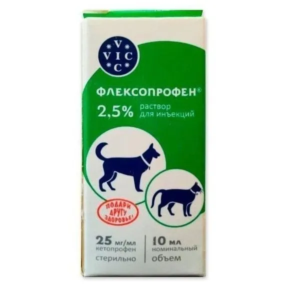 Как правильно назначать Флексопрофен? Инструкция по применению рекомендует как внутривенное, так и внутримышечное введение. Дозировка для кошек и собак составляет 2мг действующего вещества на каждый кг массы тела однократно в сутки. Продолжительность введения составляет от 1 до 5 дней в зависимости от степени поражения сустава.