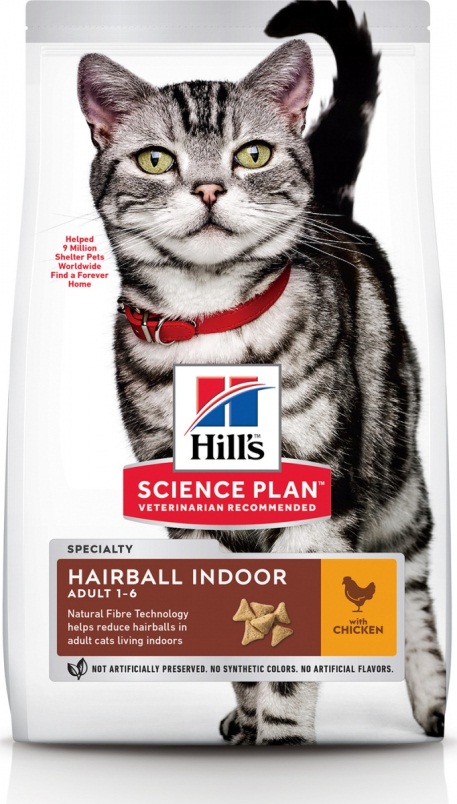 Сухой корм для кошек HILL'S SCIENCE PLAN Hairball Indoor специально разработан, чтобы избежать формирования волосяных комочков (безоаров) в пищеварительном тракте взрослых кошек, живущих в домашних условиях. Передовая технология использования клетчатки для уменьшения образования волосяных комочков в пищеварительном тракте Низкий уровень жира и калорий для идеальной массы тела Высококачественный белок для поддержания мышц