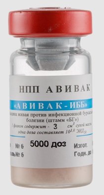 Вакцина против инфекционной бурсальной болезни живая сухая штамм «БГ». Вакцину изготавливают из вируссодержащих субстратов (гомогената тушек и хориоаллантоисных оболочек СПФ-эмбрионов кур), инфицированных штаммом «БГ» вируса инфекционной бурсальной болезни. Вакцина представляет собой сухую однородную пористую массу розово-коричневого цвета, легко растворяющуюся в воде без образования хлопьев и осадка. В каждом флаконе содержится 100–5000 доз препарата.