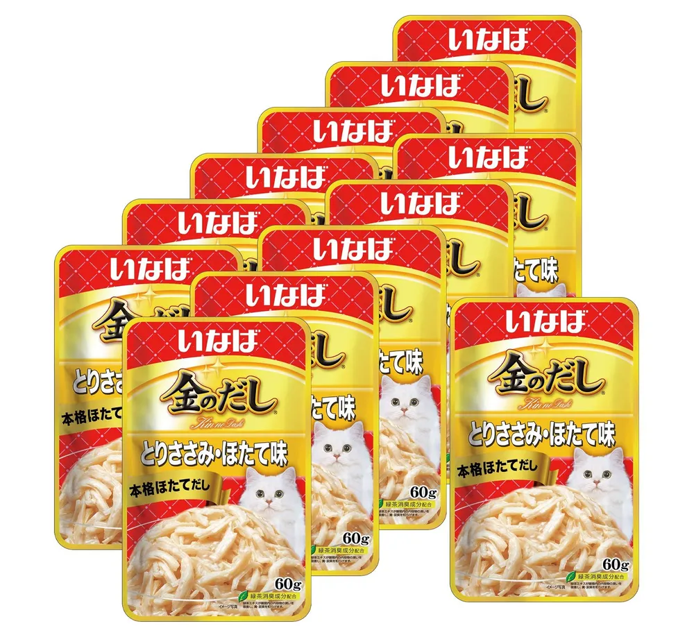 Суперпремиальный влажный корм для кошек Kinnodashi от японского производителя Inaba приготовлен на основе нежных кусочков филе фермерской курицы с добавлением морского гребешка в аппетитном насыщенном бульоне золотистого цвета.