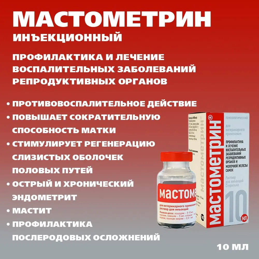 Мастометрин (Хелвет) 10мл эндометриты, вагиниты, маститы, раствор для инъекций (ЛИЦЕНЗИЯ)