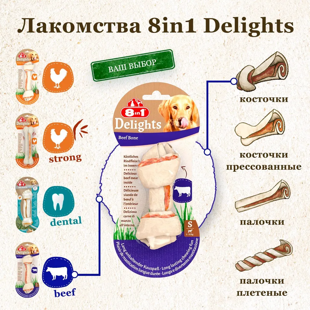 Косточка (8in1) Delights Beef S жевательная с говядиной для мелких собак 11см, 35гр (8764)