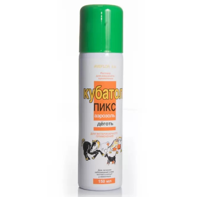 Кубатол Пикс применяют сельскохозяйственным и мелким домашним животным (за исключением кошек) при различных поражениях кожи, таких как ссадины, дерматиты, экземы, медленно заживающие раны, а также заболевание когтей (поверхностный панариций и др.) и копыт (нагноение роговой стрелки др.). Перед нанесением лекарственного средства проводят санитарную обработку пораженной поверхности кожи. Затем флакон с лекарственным средством тщательно встряхивают и, держа его вертикально, распыляют Кубатол Пикс на пораженный участок с расстояния 15-20 см от обрабатываемой поверхности в течение 1-2 секунд один или два раза в сутки. После нанесения лекарственного средства животному не позволяют слизывать образовавшуюся пленку в течение 5минут. Продолжительность лечения составляет от 3 до 8 дней, определяется лечащим ветеринарным врачом в зависимости от тяжести поражения и скорости заживления тканей. Обработка животных следует проводить в хорошо проверенном помещении. При лечении поражений в области головы следует предотвращать попадание лекарственного средства в глаза.