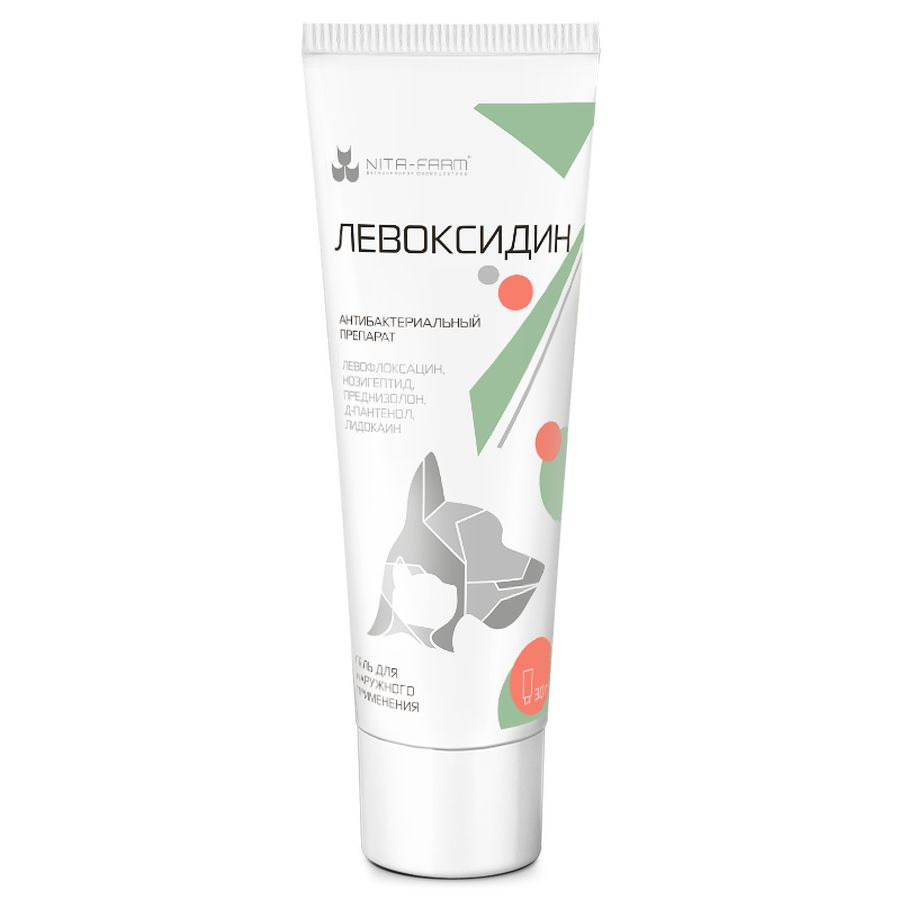 ЛЕВОКСИДИН - гель для наружного применения на основе левофлоксацина, нозигептида, преднизолона, Д-пантенола и лидокаина для лечения кошек и собак при воспалительных заболеваниях кожи и мягких тканей, вызванных микроорганизмами чувствительными к левофлоксацину и нозигептиду, в том числе при: дерматите (остром, контактном, атопическом, солнечном), пиодермии (поверхностной, глубокой), терапии ран и абсцессов, флегмон, ожогов, пролежней опрелости, обморожения, для профилактики послеоперационных инфекций после проведения кастраций, купирования хвостов, ушей, наложение швов и т.д., а также при осложнениях вторичной инфекцией.