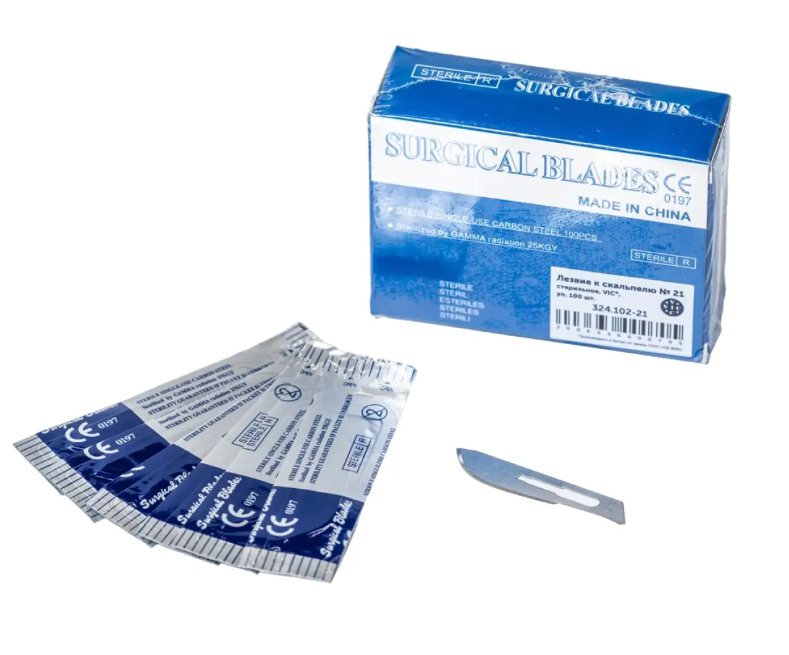 Лезвие к скальпелю №21 стерильное, VIC, уп 100шт |