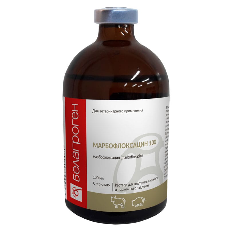 Состав: 1 мл препарата в качестве действующего вещества содержится 100 мг марбофлоксацина, в качестве вспомогательных веществ – глюконолактон, динатрия ЭДТА, монотиоглицерол, метакрезол, вода для инъекций.