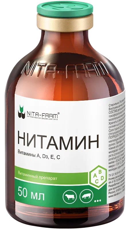 Нитамин применяют для профилактики и лечения гиповитаминозов, нормализации обмена веществ у животных при стрессах, снижении продуктивности и дополнительных нагрузках: во время беременности (только во второй половине) и в период лактации, особенно при нарушениях воспроизводительной функции; при перемещении животных, при замене кормов на откорме, при задержке роста и недостаточном привесе, при инфекционных и инвазионных заболеваниях, при ветеринарных мероприятиях: профилактических прививках и дегельминтизации; после оперативных вмешательств или ранений, при плохой яйценоскости и пониженной прочности скорлупы яиц.Рекомендации по применению