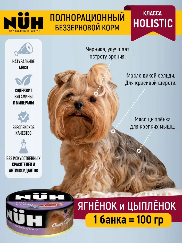 Нюх (NUH) 0,1кг ягненок и цыплёнок беззерновой влажный для взрослых собак мелких пород