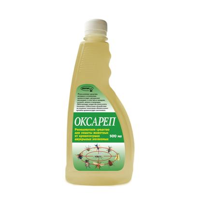 Обработку животных "Оксарепом" проводят в период активного лета насекомых на открытом воздухе.Перед применением репеллента содержимое флакона встряхивают. Прикрыв глаза животного, обрабатывают все части тела, особенно область головы, спины и конечностей. Расход репеллента на одно животное составляет до 100 мл, что соответствует 150 нажатиям на ручку распылителя и обработанной площади - 3,5 м2.