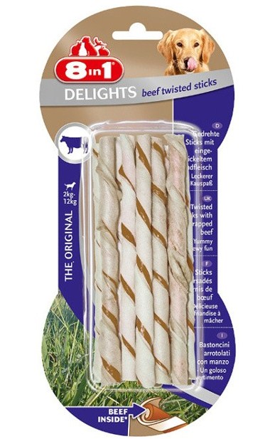 8в1 Delights Beef Sticks Twisted палочки плетеные с говядиной д/собак (10шт) 55г (122500) |