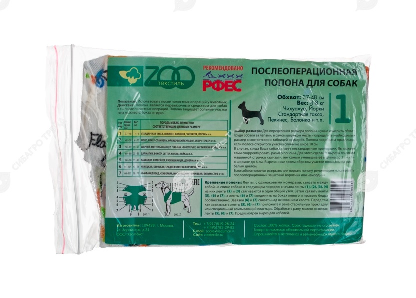 ОписаниеОсновное свойство изделия — предотвратить попадание болезнетворной микрофлоры на хирургический разрез. Дополнительно защищает поверхность раны от солнечных лучей, грязи и механических повреждений. Вся линейка послеоперационных попон производятся из фланели. Ткань гигроскопична, не деформируется в процессе стирки, не линяет, не дает усадку и быстро сохнет. В качестве фиксации использована плотная лента, которая не деформируется, не перекручивается и не подвержена распусканию в процессе эксплуатации. Лента зафиксирована при помощи двухэтапной прошивки, Все изделия имеют плоские швы, позволяющие избегать появления раздражения и натираний покрова животного, не создают препятствие для заживления ран. В линейке попон для собак предусмотрена прошивка мест для выреза физиологических отверстий. Попоны имеют анатомическую форму. №1 Вес: 4 кг - 8 кг Обхват груди: 37 см - 48 см