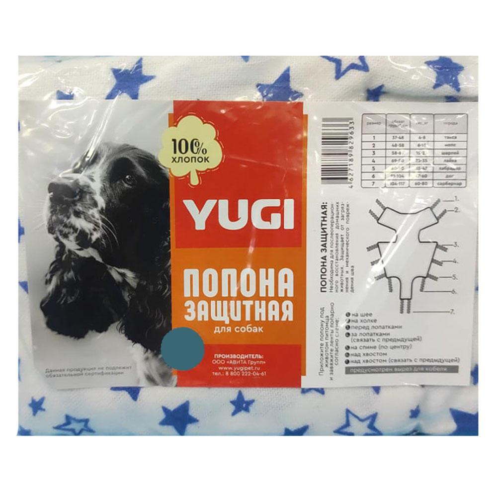 Попона Юги для Собак №1 - предназначена для предотвращения разлизывания ран, защиты тела животного после медицинских операций, для фиксации перевязочного материала, а также для иных гигиенических целей. Выполнена из 100% хлопка.