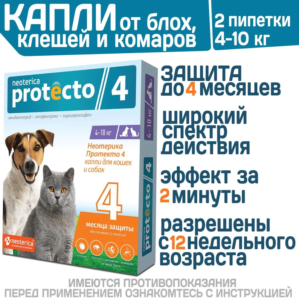 Protecto Neoterica капли для кошек и собак 4-10КГ 2ШТ P302 (ЛИЦЕНЗИЯ)