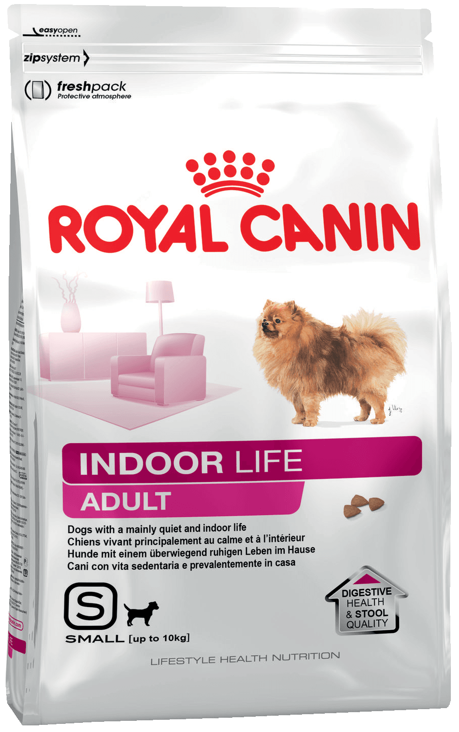 INDOOR LIFE ADULT поддерживает здоровье пищеварительной системы и уменьшает запах и объем фекалий благодаря высокоусвояемым белкам L.I.P., оптимальному содержанию клетчатки и качественным источникам углеводов