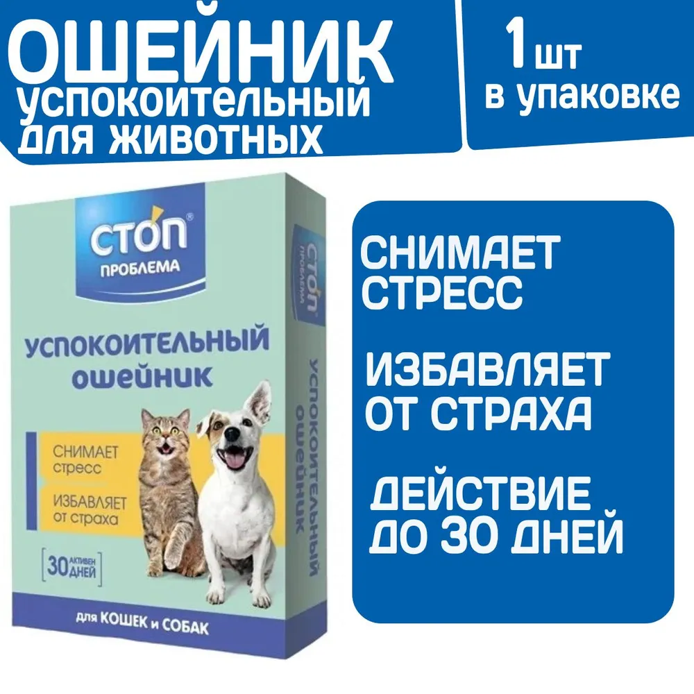 СтопПроблема Ошейник успокоительный предназначен для коррекции нежелательного поведения при стрессах, страхах и возбуждении у кошек и собак. Рекомендуется применять при длительной разлуке с хозяином, половом возбуждении, для адаптации животного в новых условиях, в качестве профилактики стресса. Действие ошейника длится до 30 дней.
