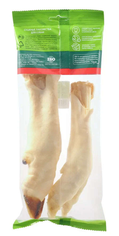 Содержит 2 высушенные бараньи ноги. Гипоаллергенный белок, высокое содержание хрящевой и соединительной ткани. Изделие содержит кожу, много кости, жира, колагеновой соединительной ткани и лишь прослойки мышечной ткани. Массирует десны и укрепляет жевательную мускулатуру, очищает зубной налет и предотвращает возникновение зубного камня. Прекрасная игрушка, сохраняющая в целости предметы интерьера и личные вещи. Изделие содержит трубчатую кость и не предназначено для полного поедания. Как только собака съела футляр из кожи, сухожилий и мышц – необходимо заменить лакомство на новое.