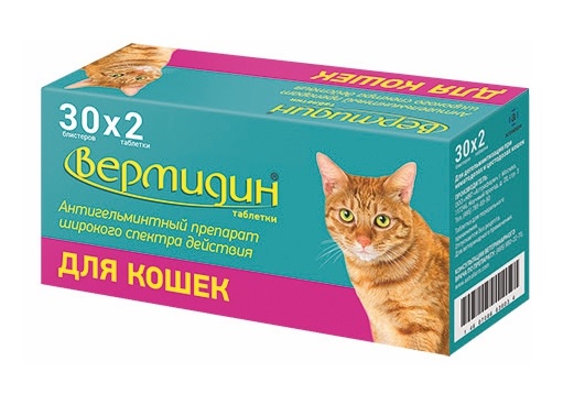 Вермидин 2таб х 30 антигельминтик для кошек, 1таб./3кг (ЛИЦЕНЗИЯ) (упаковка)