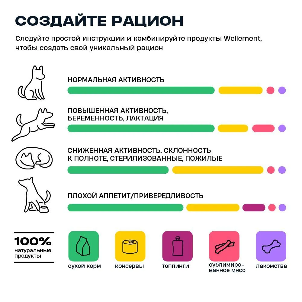 Знаете ли вы, что океаническая рыбка макрель - одна из самых быстроплавающих рыб? Её скорость может достигать 80 км/ч. А чтобы и ваш пёсик мог стать самым быстрым во дворе, создайте уникальный рацион из продуктов Wellement. Полнорационный паштет с тунцом и океанической рыбой для собак может стать как прекрасным дополнением к сухому корму, так и яркой основой рациона. Океаническая рыба богата не только энергией, но и витаминами и полиненасыщенными жирными кислотами для здоровья кожи и шерсти. Эта гипоаллергенная формула из натуральных ингредиентов не оставит равнодушным даже самых избирательных четвероногих гурманов!